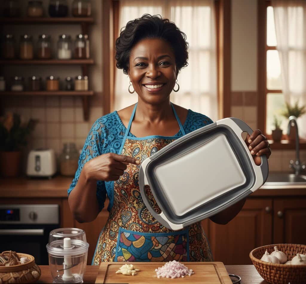 It is a 3-in-1 smart kitchen tool designed for Nigerian kitchens.